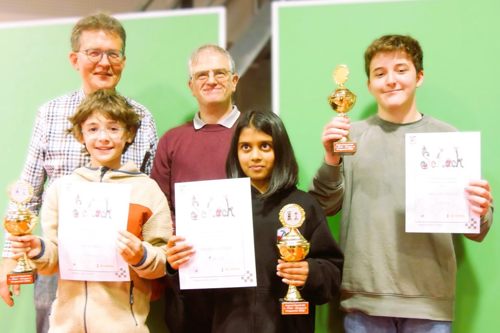 Nach sieben Runden standen die Gruppensieger fest, die glücklich ihren Pokal entgegennahmen, nämlich Arda Yilmaz (Elberfelder SG) mit 6,5 Punkten in Gruppe A, Yazhini Satheesh (Düsseldorfer SK) mit 6 Punkten in Gruppe B und Levi Filippov (Klub Kölner SF) mit 6 Punkten.