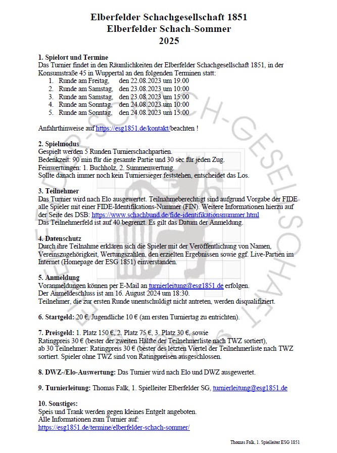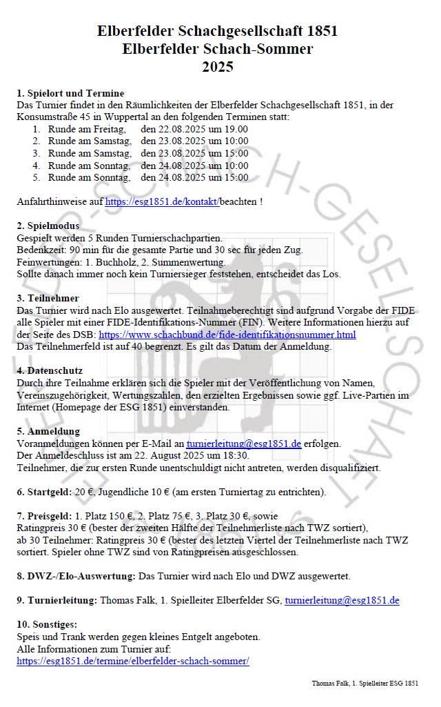 Teilnehmerliste Elberfelder Schach-Sommer
