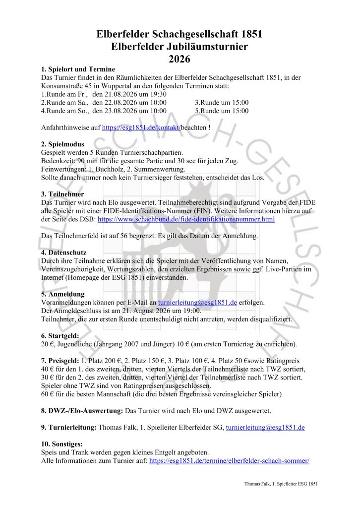 Teilnehmerliste Elberfelder Jubiläumsturnier