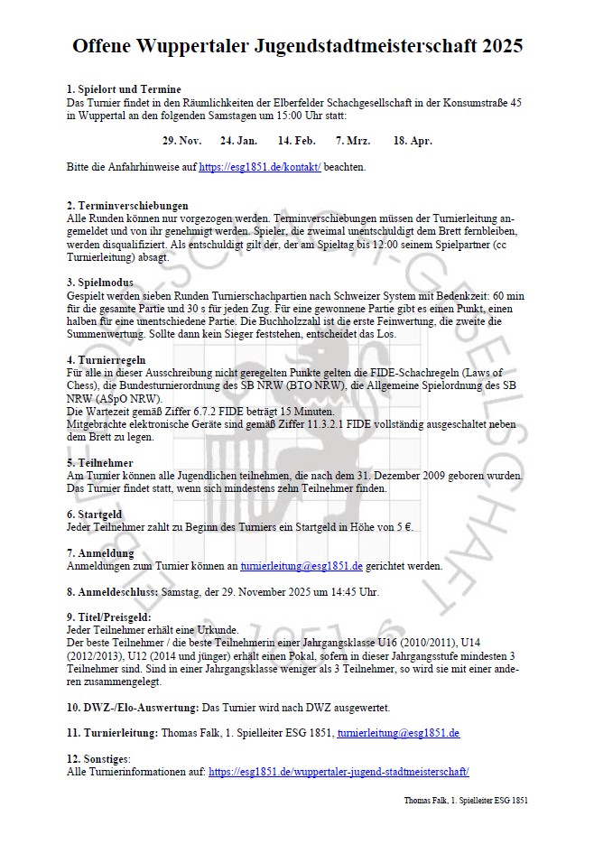 Schachverband Niederrhein FIDE-Seite ESG-Seite chessbase Turnierseiten